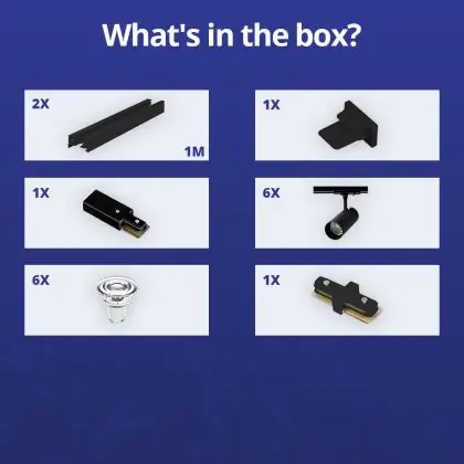 Beschreibung Bright Choice Komplettset 1-Phasen Rail 2 Meter Schwarz | incl. 6x Spot + GU10 2700K 3W Dimmbar + Abschlusskappe, Stromanschluss und I-Verbinder