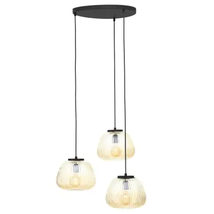 Die Brilliant Kaizen Pendelleuchte Glas Pendelleuchte Metall Schwarz Beige | 400mm - Geeignet für 3x E27 sorgt für eine angenehme Ausleuchtung und punktet durch modernes Design. Diese Leuchte ist speziell zur Montage an der Decke vorgesehen.