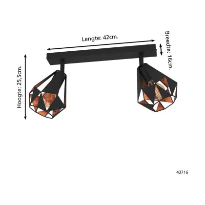 Beschreibung Eglo Deckenleuchte Carlton 7 Stahl Schwarz Bernstein | IP20 - Geeignet für 2x E27