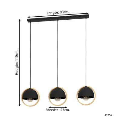 Beschreibung Eglo Pendelleuchte Callow Stahl Holz Schwarz Braun | IP20 - Geeignet für 3x E27