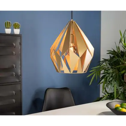 Die Eglo Pendelleuchte Carlton Stahl Gold | IP20 - Geeignet für 1x E27 sorgt für eine angenehme Ausleuchtung und punktet durch modernes Design. Diese Leuchte ist speziell zur Montage an der Decke vorgesehen.