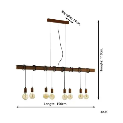 Die Eglo Pendelleuchte Townshend 4 Stahl Braun Schwarz | IP20 - Geeignet für 8x E27 sorgt für eine angenehme Ausleuchtung und punktet durch modernes Design. Diese Leuchte ist speziell zur Montage an der Decke vorgesehen.