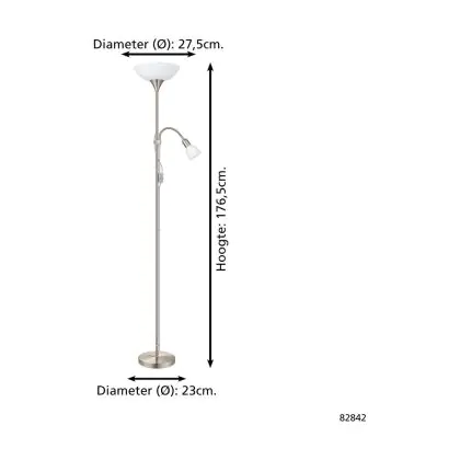 Beschreibung Eglo Stehlampe Up 2 Stahl Satin-Nickel | IP20 - Geeignet für 1x E27