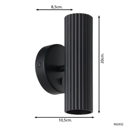 Eglo Wandleuchte Portillo Stahl Schwarz | Geeignet für 2x GU10