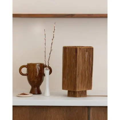Good&Mojo Tischlampe Panama Raffia Braun L | Geeignet für 1x E27