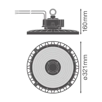 Beschreibung Ledvance LED Highbay Gen 5 Aluminium Schwarz 150W 26250lm 70D - 865 Tageslichtweiß | IP66 - Dali Dimmbar