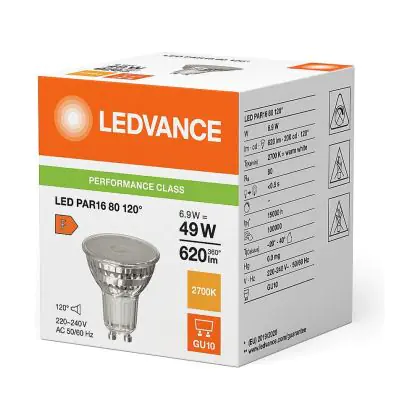 Beschreibung Mehrfachpackung 10x Ledvance Performance LED-Spot Reflektor GU10 PAR16 6.9W 620lm 120D - 827 Extra Warmweiß | Ersatz Für 80W