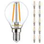 Die Mehrfachpackung 10x Noxion Lucent LED E14 Kugel Fadenlampe Klar 2.5W 250lm - 827 Extra Warmweiß | Ersatz für 25W ist eine effiziente E14 LED-Lampe mit Retrodesign und der perfekte Ersatz für Ihre konventionellen 25W Lampen mit E14. Zudem strahlt sie Licht in der Farbtemperatur 2700K - Extra Warmweiß aus und punktet durch eine lange Lebensdauer.