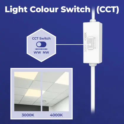Das LED-Panel kommt mit der Farbtemperatur 3000K - 4000K CCT daher. Als Faustregel gilt: Je niedriger der Kelvinwert, desto gemütlicher wirkt das Licht.