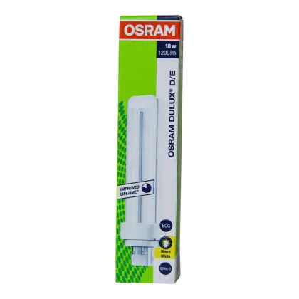 Die Osram Dulux D/E 18W 830 ist mit Energieklasse B ausgezeichnet. Aufgrund einer langen Lebensdauer von durchschnittlich 20.000 Stunden, müssen Sie sich lange nicht um Ersatz kümmern. Das Ende der Lebensdauer ist erreicht, sobald die Lampe zu blinken anfängt und Schwierigkeiten beim Start aufweist.