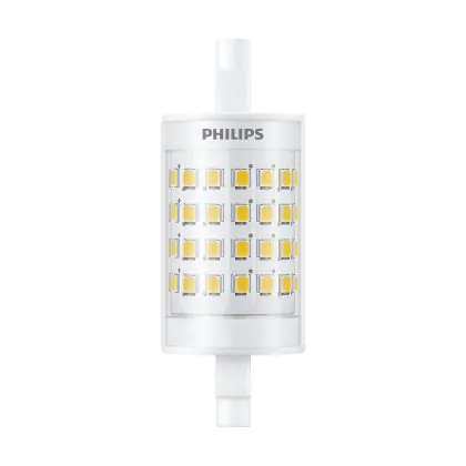 Die Philips CorePro LED R7S Linear 78mm Klar 7W 1000lm - 840 Kaltweiß | Ersatz Für 60W ist eine effiziente R7s LED-Lampe und der perfekte Ersatz für Ihre konventionelle Halogen-Stablampe mit W. Zudem strahlt sie Licht in der Farbtemperatur 4000K - Kaltweiß aus und punktet durch eine lange Lebensdauer.