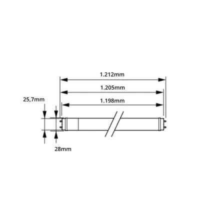 Wenn Sie zu LED wechseln, ist es wichtig, dass Sie die Länge und Wattanzahl Ihrer bisherigen Leuchtstoffröhre beachten. Diese 18 W LED-Röhre ersetzt eine konventionelle 36 W Leuchtstoffröhre mit einer Länge von 1214 mm. Der Durchmesser beträgt genau wie bei der konventionellen T8-Leuchtstoffröhre 25,4 mm. Auch der Sockel ist gleich: G13. Dieser kommt mit zwei Sockelstiften daher, die genau 13 mm auseinanderstehen.