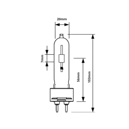Die Gasentladungslampe verfügt über einen G12-Stecksockel mit zwei Stiften. Damit ist eine Installation durch Einstecken besonders einfach. Die Abkürzung “G” steht übrigens für das ursprüngliche Herstellungsmaterial der Sockel: Glas! Die Ziffer hinter dem Buchstaben gibt den Abstand zwischen den Kontaktstiften an, also in diesem Fall 12 mm.